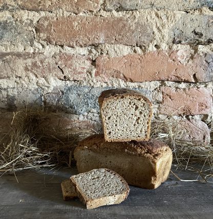 Pyszny, ręcznie wyrabiany chlebek żytnio-orkiszowy na zakwasie żytnim, z pieca opalanego drewnem i mąki z ekologicznych zbóż z własnej uprawy.