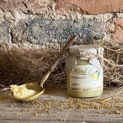 Łagodny miód o pięknej, ciemnej barwie i żywicznym posmaku i aromacie.